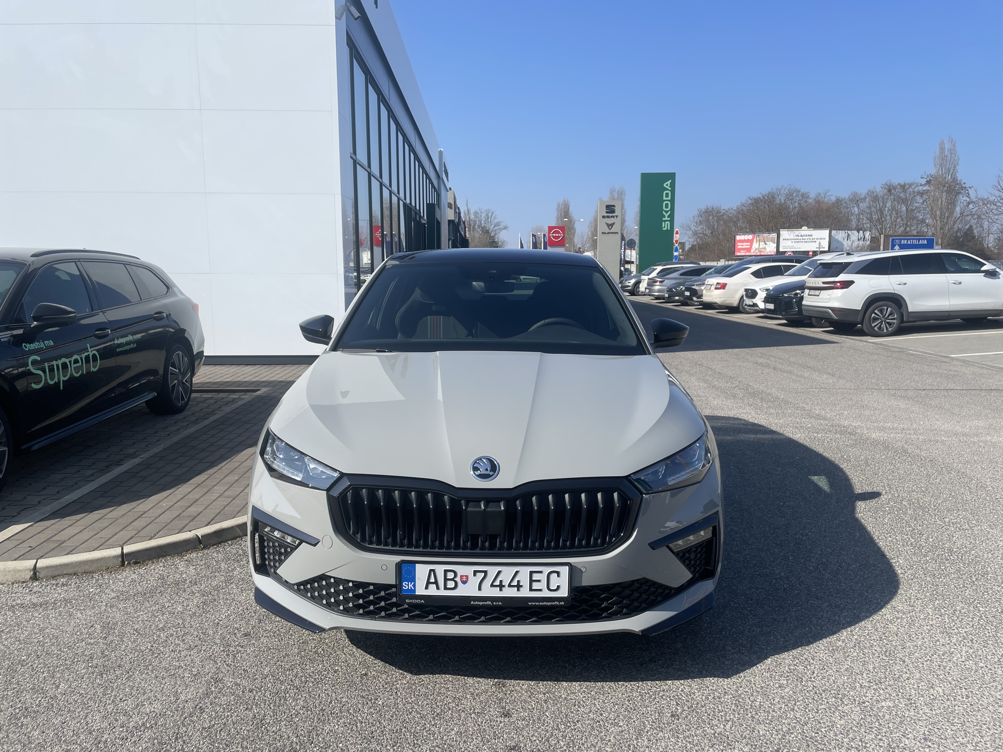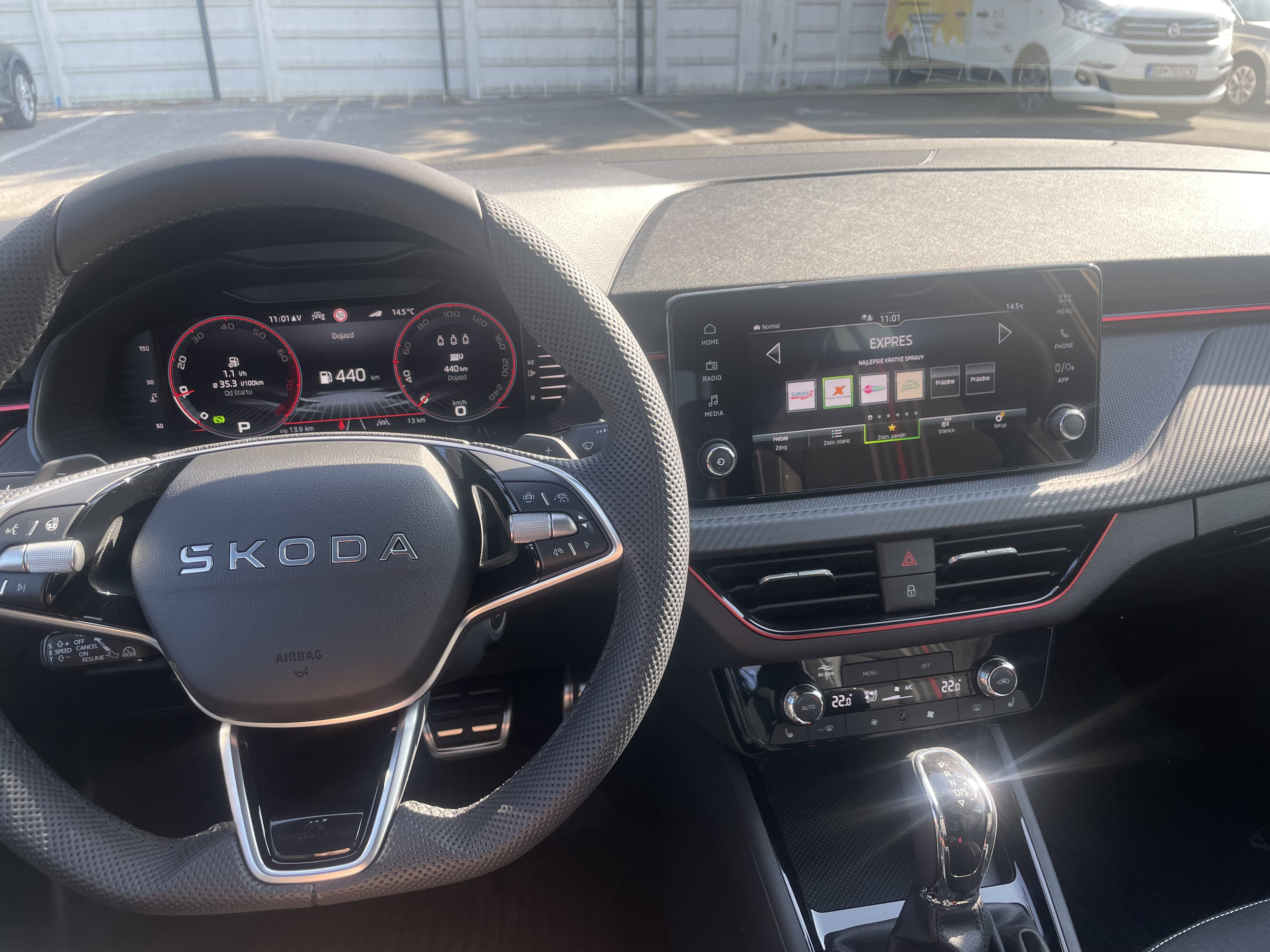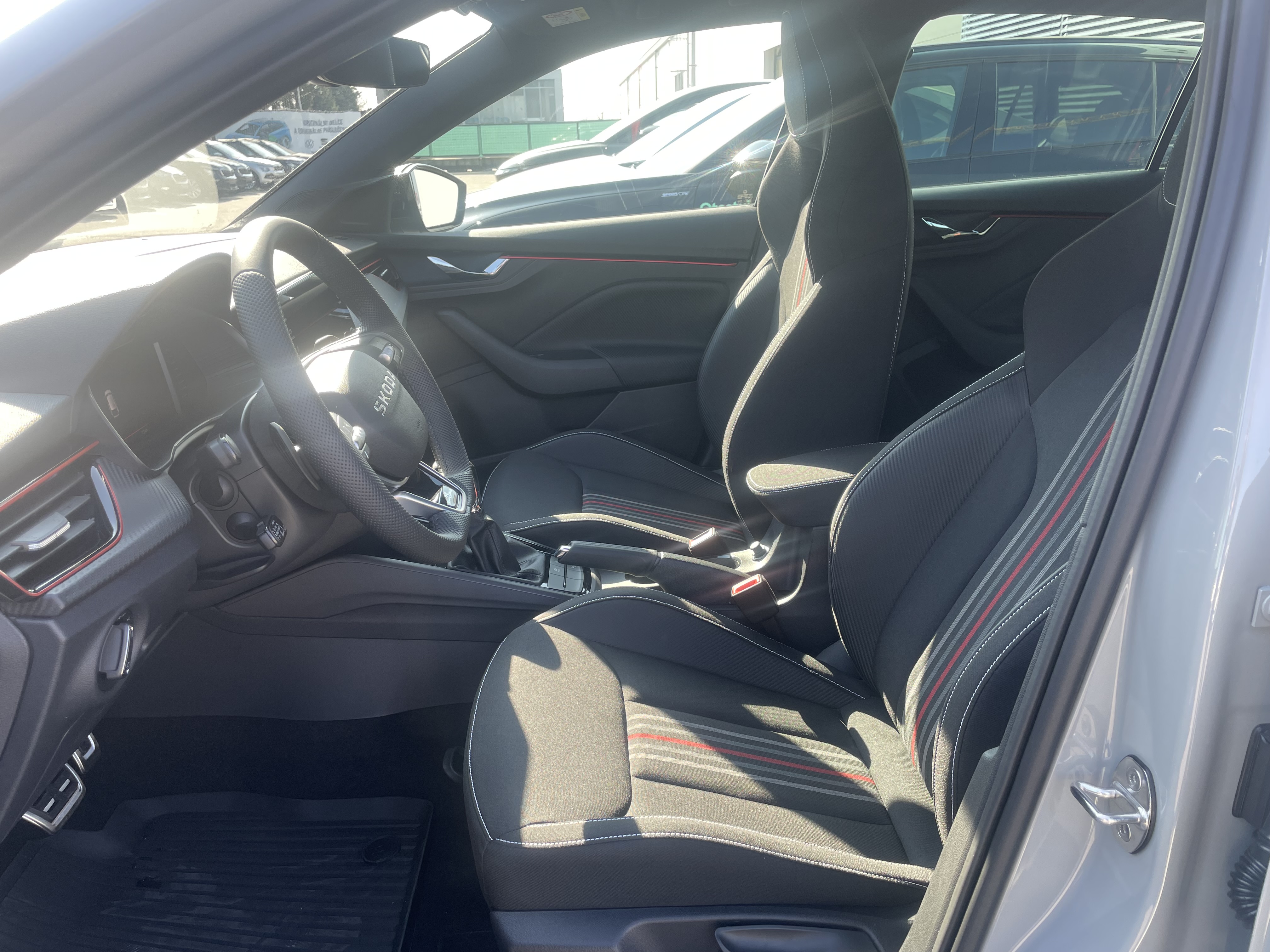 Interiér Monte Carlo, Čierny strop, Čierne dizajnové prvky (predný a zadný nárazník), Predĺžené sklo 5 dverí a panoramatická strecha, Disky Kajam Aero z ľahkej zliatiny 6,5J × 17" – čierne, Airbag vodiča a spolujazdca, airbag spolujazdca s deaktiváciou, Hlavové airbagy a bočné airbagy vpredu, ESC vrátane ABS, EBV, MSR, ASR, EDS, HBA, DSR, ESBS, XDS+, TPM, multikolíznej brzdy (MKB) a funkcie Prefill, Front Assist - výstraha pred kolíziou a podpora núdzového brzdenia a Pederstrian Monitor (ochrana chodcov), Easy Light Assist – svetelný senzor, Dažďový senzor, Lane Assist – asistent udržiavania v jazdnom pruhu, Asistent rozjazdu do kopca, Driving Mode Select, ISOFIX na sedadle spolujazdca, 3. hlavová opierka vzadu, KESSY - bezkľúčové odomykanie, zamykanie a štartovanie, Centrálne zamykanie s diaľkovým ovládaním, 2 sklopné kľúče, Full LED Matrix predné sveltomety, Predné hmlové svetlá s corner funkciou, Full LED zadné svetlá s dynamickým ukazovateľom smeru, Ambietné osvetlenie prepínateľné biela/červená, Brzdy kotúčové (predné aj zadné), 10" virtuálny kokpit, Čítanie dopravných značiek, 3-ramenný vyhrievaný multifunkčný kožený volant (pre AP s podvolantovým ovládaním DSG), Tempomat, Obmedzovač rýchlosti, Infotainment Škoda s 8" displejom a 2x USB-C vpredu, 2× USB vzadu (typ C len na nabíjanie), Ďalšie 4 reproduktory vzadu, eCall, CareConnect na 3 roky, Bluetooth, Bezdrôtový Smartlink, Climatronic – dvojzónová automatická klimatizácia so senzorom vlhkosti a kombi filtrom, Vyhrievanie predných sedadiel, Výškovo nastaviteľné sedadlo vodiča a spolujazdca, Predné a zadné parkovacie senzory, Zadná parkovacia kamera, Lakťová opierka s JumboBox, Zadná lakťová opierka, Sunset - zatmavené sklá od B-stĺpika, Driver Alert - asistent rozpoznania únavy a pozornosti vodiča, Vnútorné spätné zrkadlo s automatickým stmavovaním, Elektricky sklopné, ovládané a vyhrievané vonkajšie spätné zrkadlá v čiernej farbe, Kľučky dverí lakované vo farbe karosérie, Elektrické ovládanie okien vpredu a vzadu, Vkladané tkané koberce vpredu a vzadu, Paket Simply Clever: háčiky na tašky – pevné, nesklopné, odkladacia schránka – na strane za podbehom, uchytávacie klipy pre sieťový program, sieťový program, 12V zásuvka v batožinovom priestore, Kryty pedálov z ušľachtilej ocele, Ukazovateľ stavu kvapaliny v ostrekovači, Dáždnik, Sada na opravu pneumatík, Predĺžená záruka na 5 rokov, do 100 000 km (Platí tá z podmienok, ktorá nastane skôr, prvé 2 roky bez obmedzenia počtu kilometrov), Premenlivý servisný interval s výmenou oleja až 30 000 km alebo každé 2 roky, Škoda – Doživotná Garancia Mobility Premium - Poskytuje pomoc servisným vozidlom na mieste poruchy (porucha na vozidle, chýbajúce PHM, defekt pneumatiky, zabuchnuté/stratené kľúče, vybitá batéria, zámena paliva), odtiahnutie vozidla, prípadne služby – náhradnú dopravu, požičanie náhradného vozidla, ubytovanie pre posádku a i.
